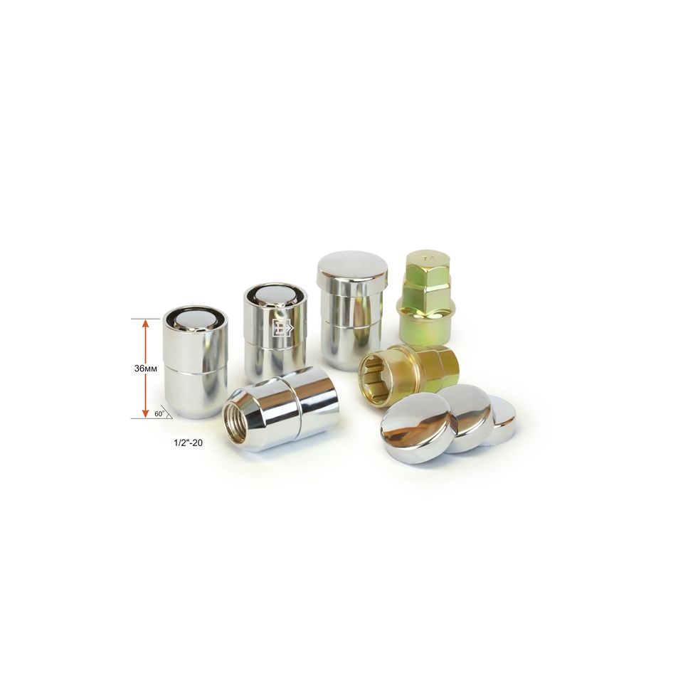 Купить Секретки Вектор гайка 1х2 L36 конус открытая с вращ. кольцом, колпачок, 2 ключа 19/21, Cr, комплект 416442X2  в Волгограде